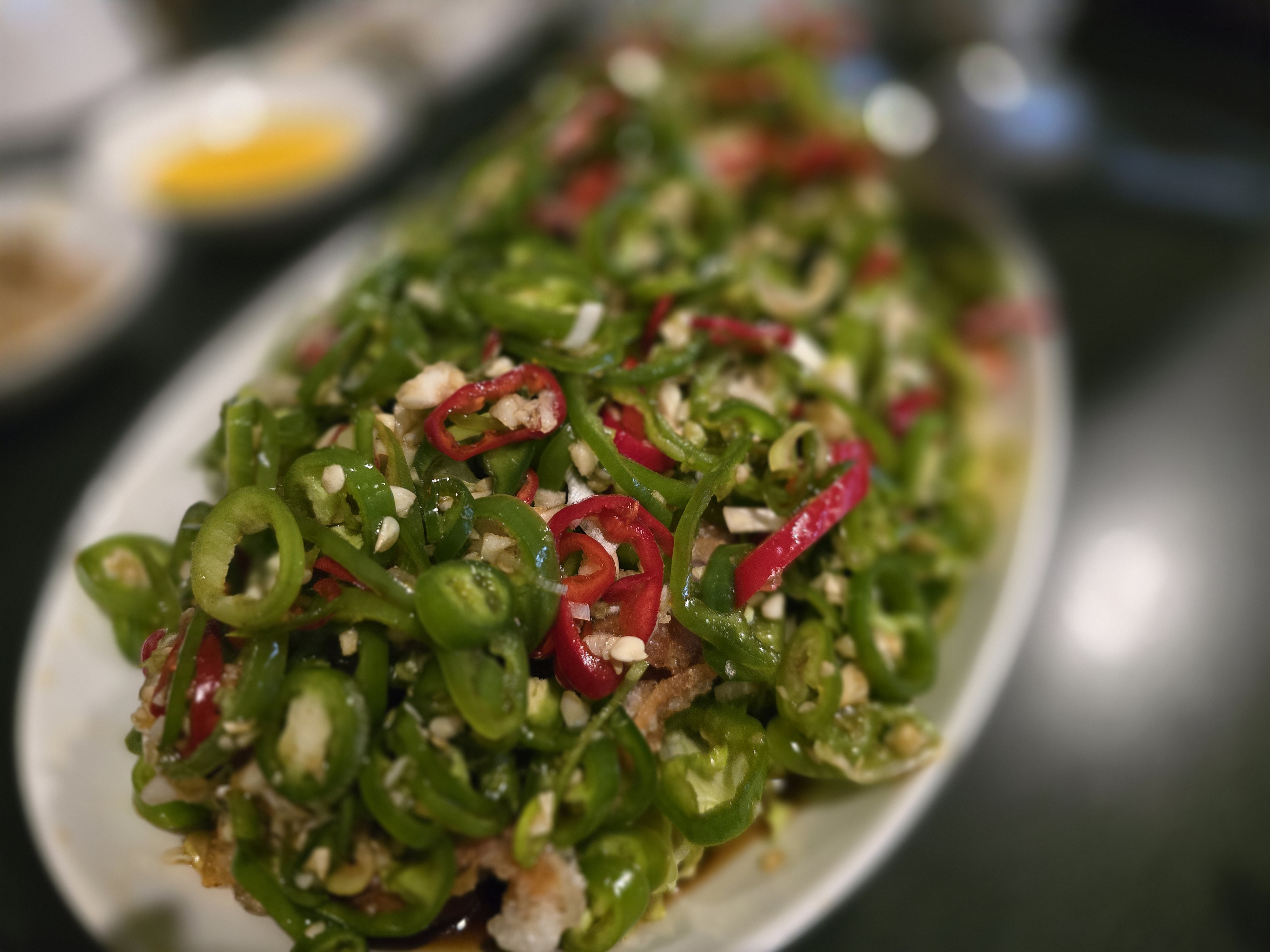- 고추 유린기: (49,000원)튀김 옷이 얇고 바삭한 닭다리살 튀김 위에 상큼한 간장 소스와 매콤한 고추가 듬뿍 올라가 있어요. 메인 메뉴들의 느끼함을 싹 잡아주는 역할을 톡톡히 해서, 여러 명이 방문할 때 꼭 시켜야 할 메뉴입니다.무탄의 어떤메뉴와도 페어링이 잘 되는 음식이라 느끼함 없이 즐기시려면 필수 메뉴입니다.