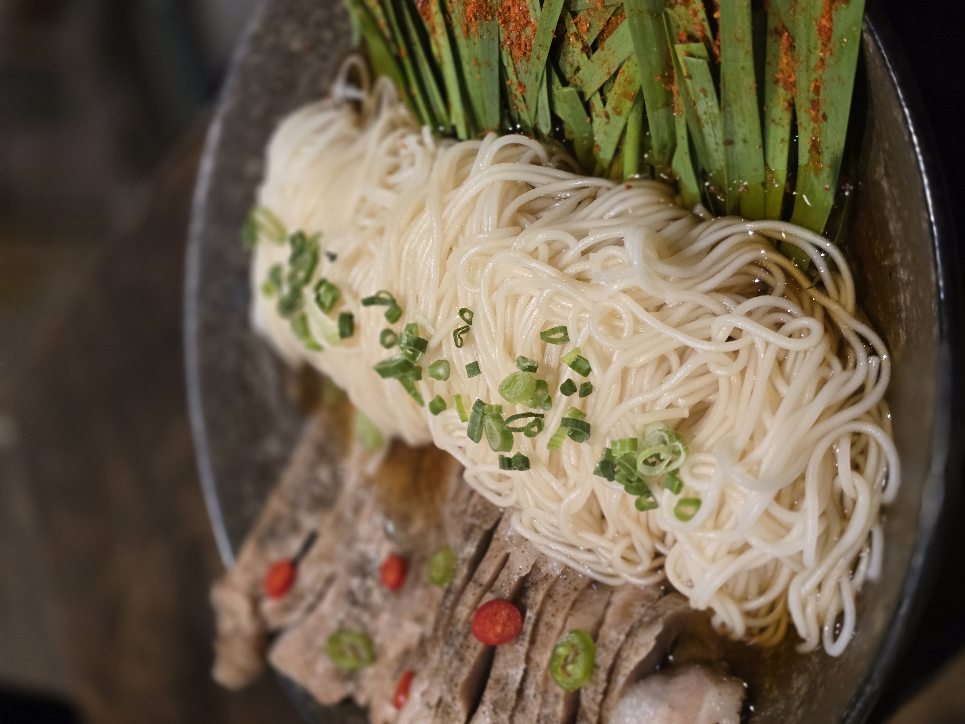 - 구심소반: 수비드기법으로 조리한 항정살을 소면. 부추와 곁들여 먹는 요리인데 달콤 짭짜름한 국물의 감칠맛이 일품입니다